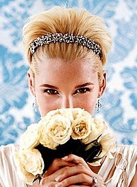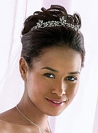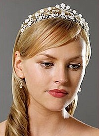 Наиболее изысканный вариант – это тиара или диадема – утонченная и элегантная корона, украшенная стразами, драгоценными камнями, которые непременно должны сочетаться с цветом глаз, или белыми бриллиантами, которые подходят всем. Также остаются на пике моды кристаллы Сваровски. Тиара лучше всего подойдет невестам, выбравшим традиционные платья невесты, возможно, даже со шлейфом.