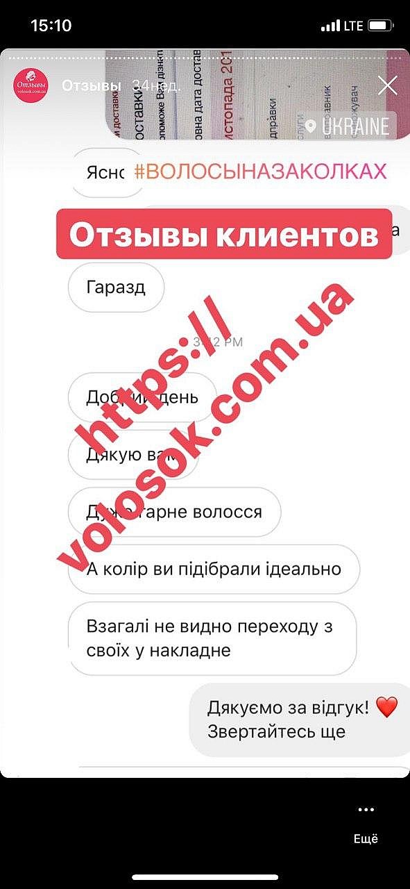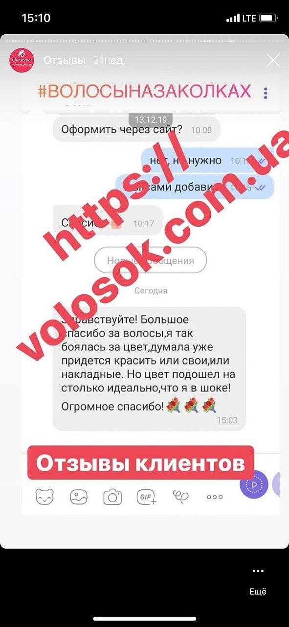 февраль 2018Реальные отзывы покупателей о натуральных волосах на заколках и для наращивания, приобретенных в магазине ВолосОК. Скриншоты - отзывы о наших волосиках. Наши довольные клиенты всегда отписываются в viber, и делятся с нами своими впечатлениями про натуральные волосы на заколках. Спасибо за ваши отзывы!