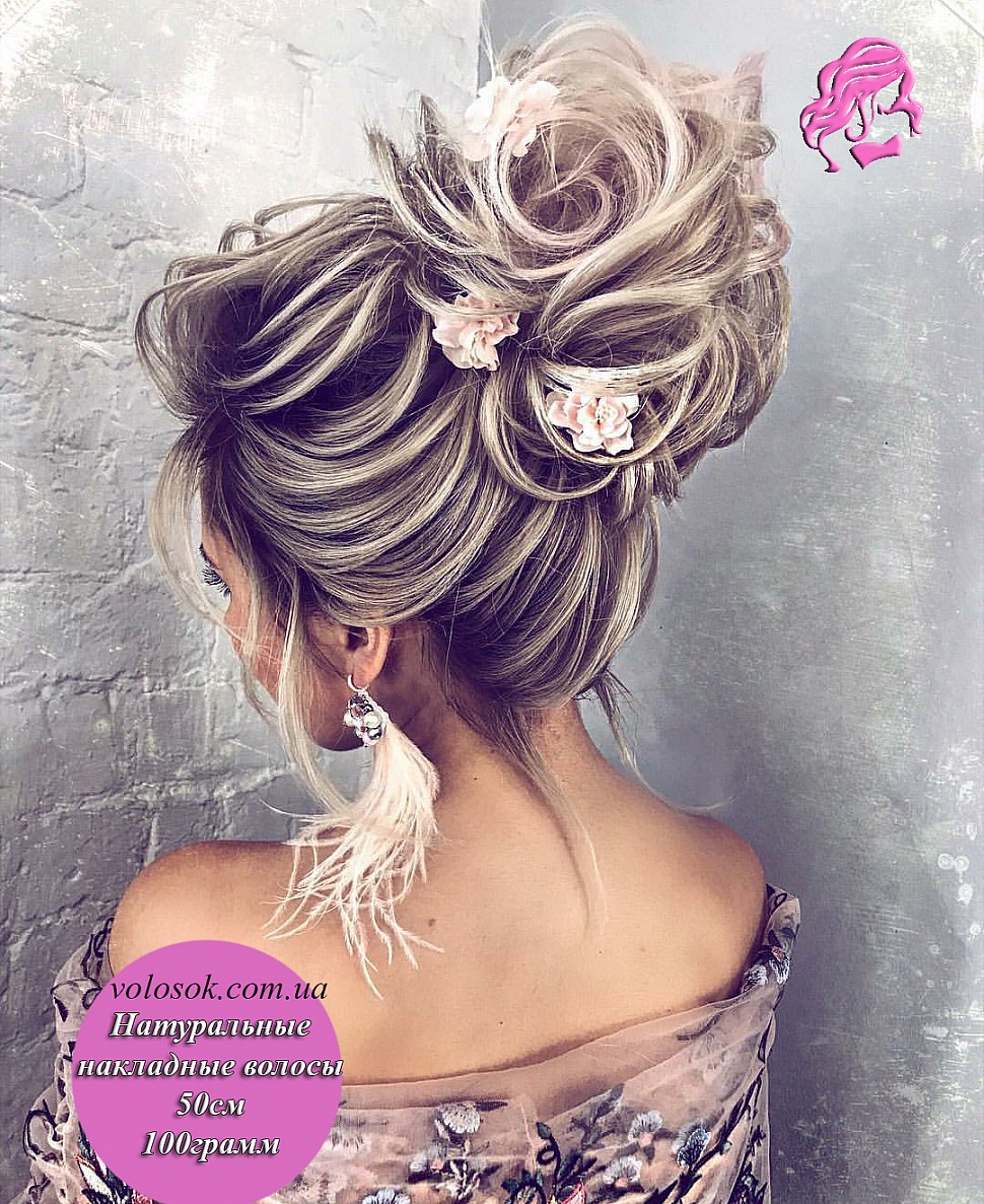 Прически с накладными волосами на заколках. Красивый небрежный пучок.